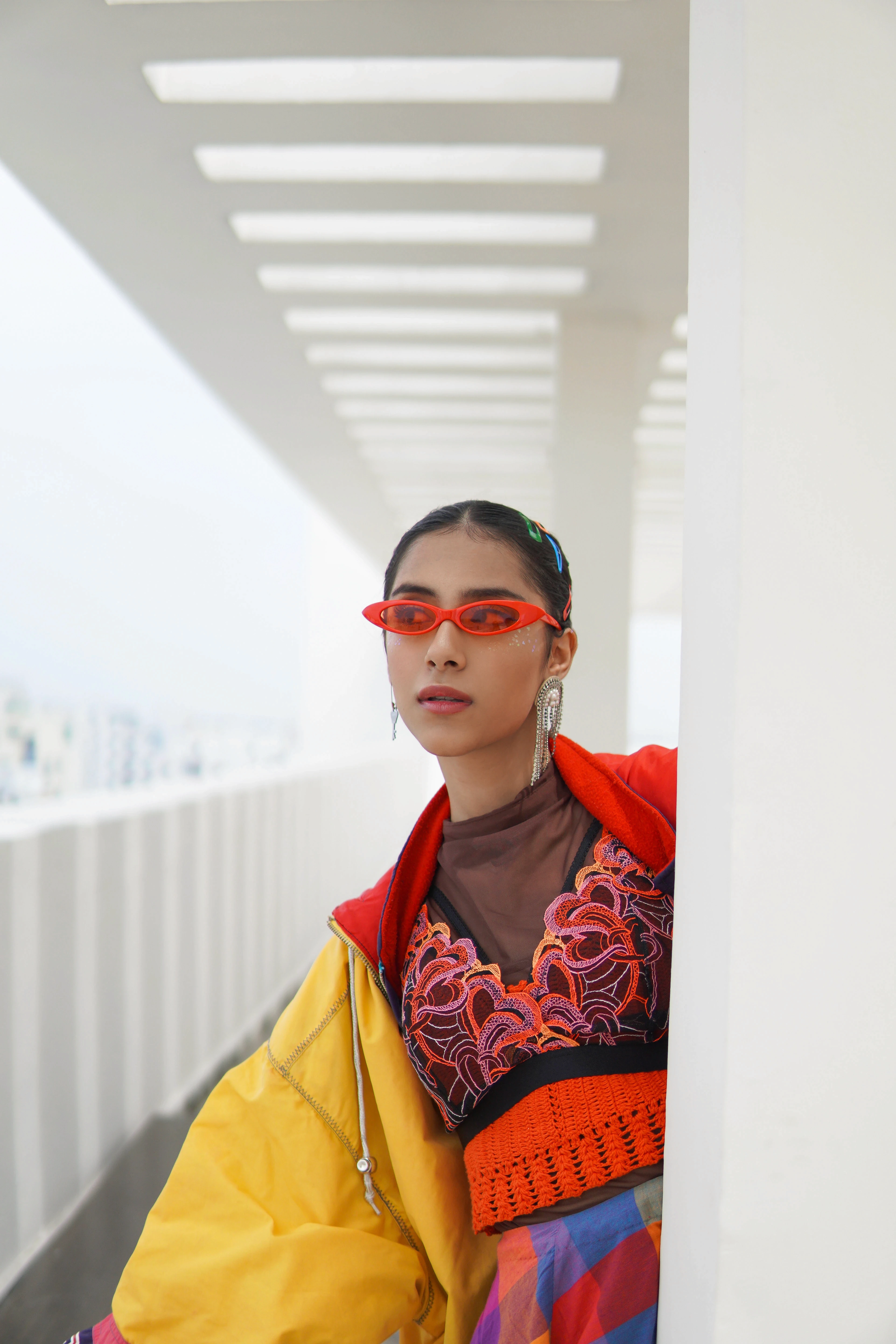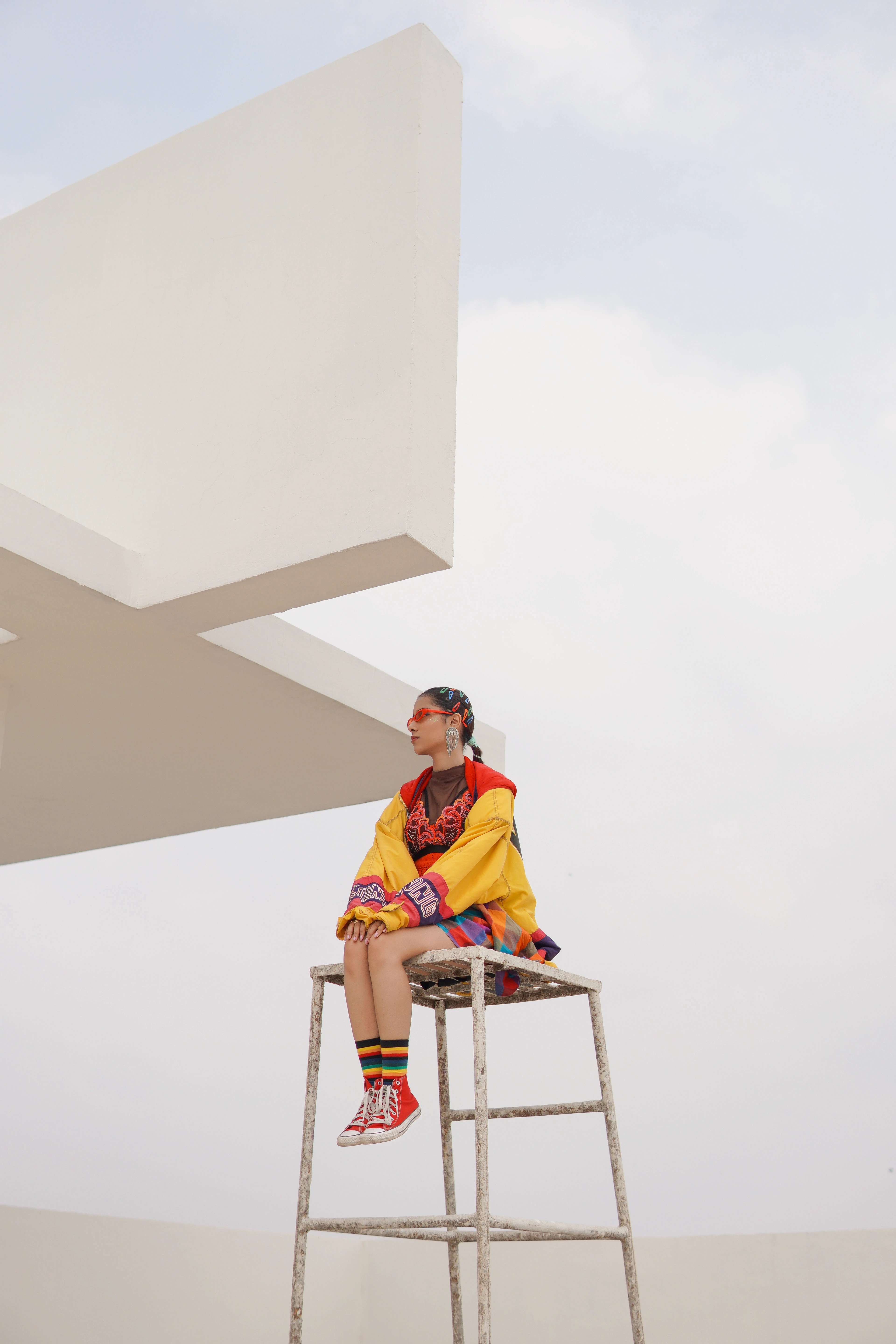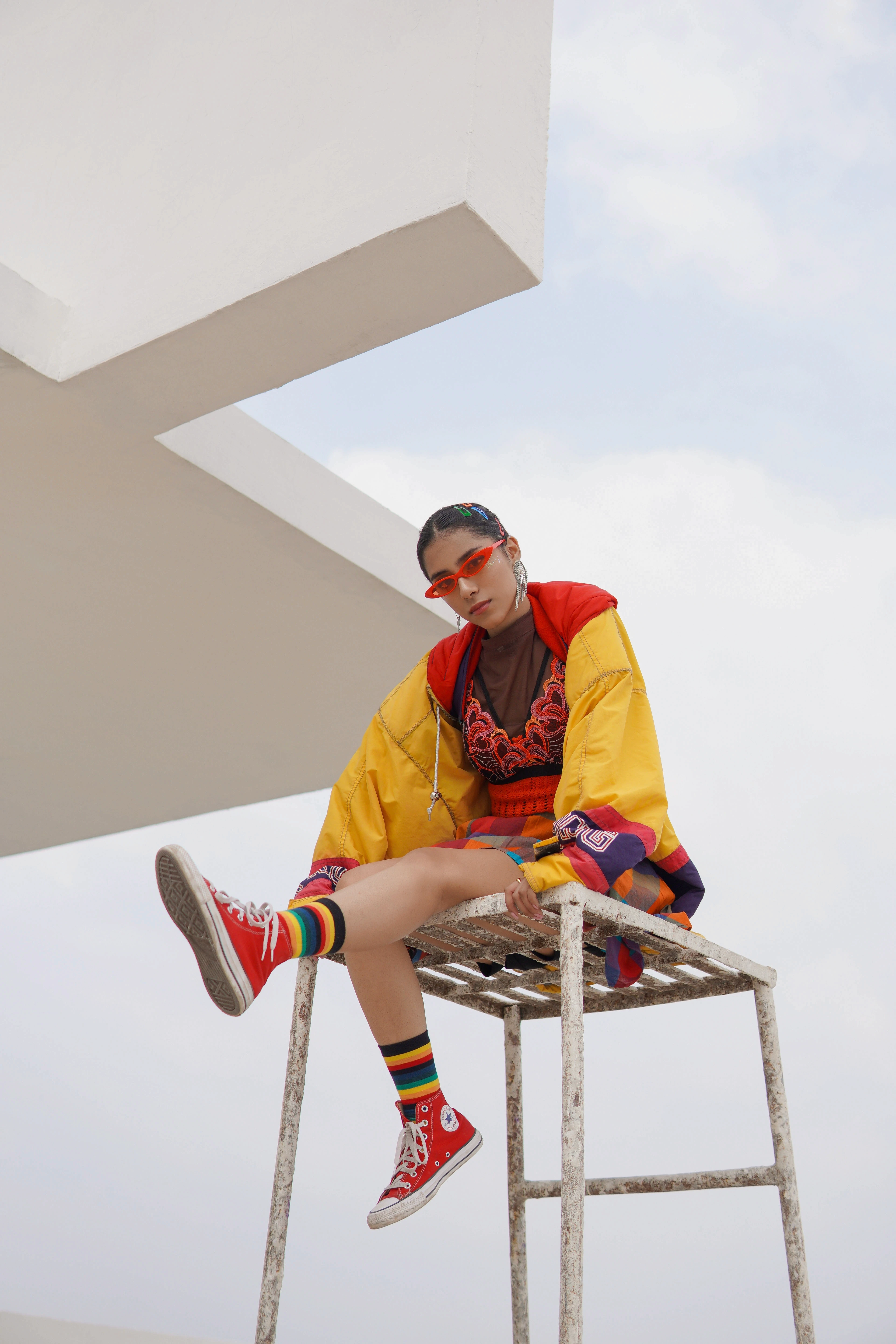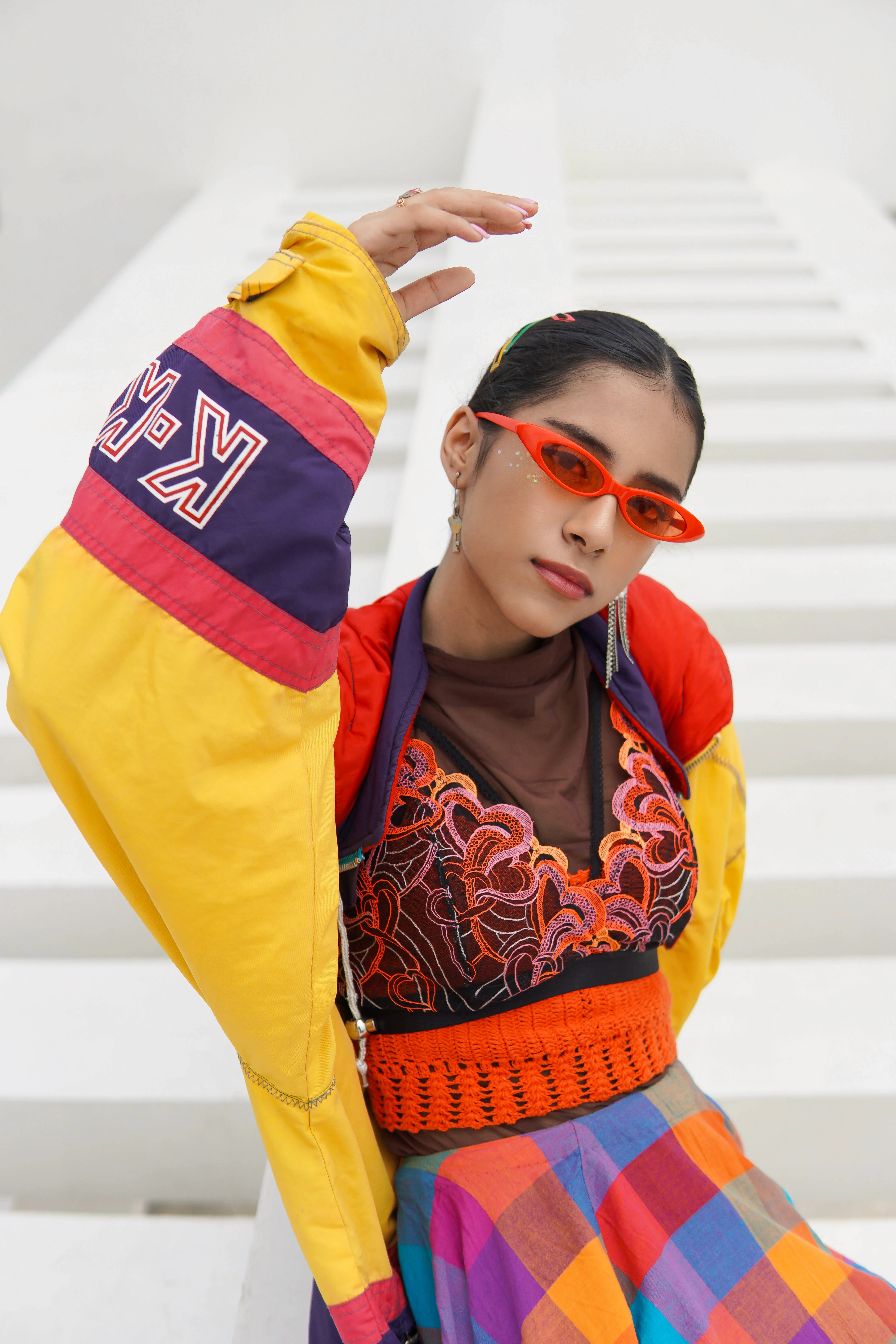 Styling & Art Direction: Developing a cohesive look that paired bold accessories (like the red sunglasses) with the colorful apparel to enhance the street-style narrative.